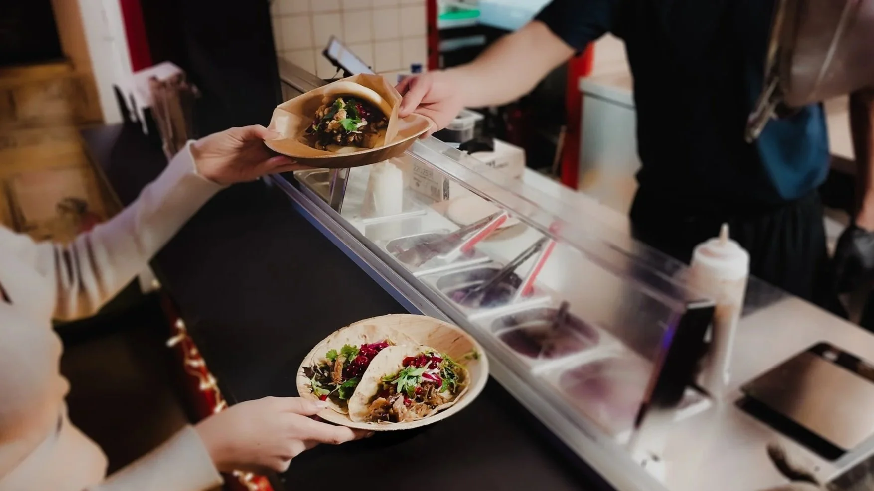 I stedet for én felles julemeny kan hver gjest bestille akkurat det de vil ha. Noen går for koreansk, andre craver smashburger, pho, empanadas eller crispy chicken – og noen vil kanskje prøve litt av alt. Vi har også vegetariske, veganske og glutenfrie alternativer i hele hallen, og dessertboden Toppers for dem som vil avslutte kvelden søtt.